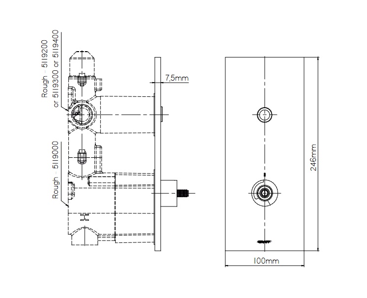 Graff Immersion Bateria natryskowa podtynkowa termostatyczna 2-uchwytowa - element zewnętrzny Chrom E-8048-LM40E0-T