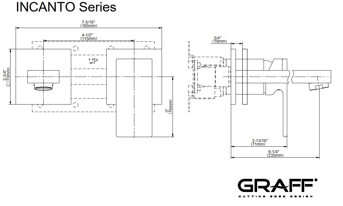 Graff Incanto Bateria umywalkowa 2-otworowa podtynkowa 235 mm - element zewnętrzny Chrom E-11236-LM55W-T