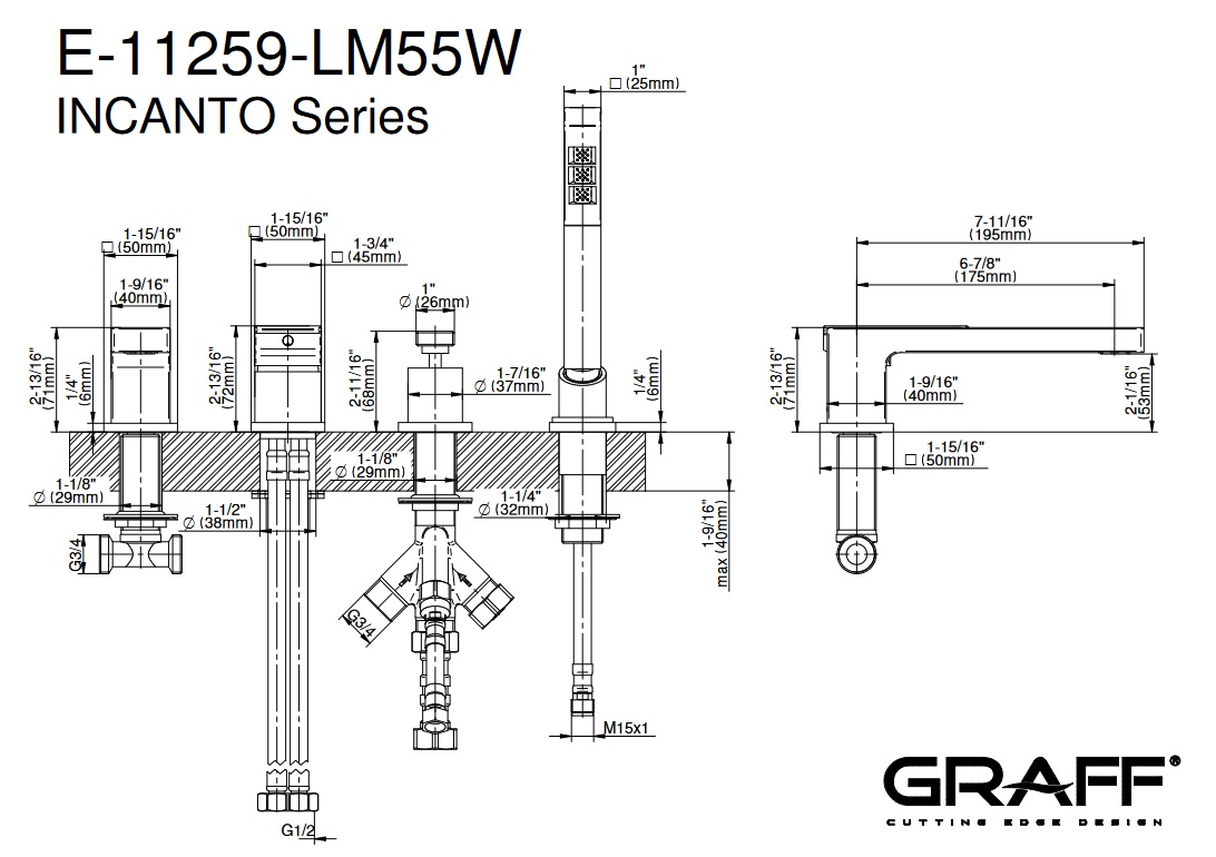 Graff Incanto Bateria wannowa 4-otworowa z zestawem natryskowym Chrom E-11259-LM55W
