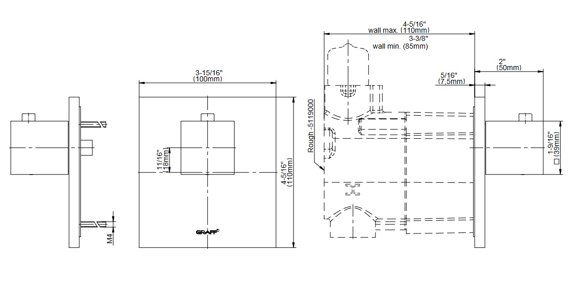 Graff Incanto Zestaw natryskowy termostatyczny serii M podtynkowy z deszczownicą ścienną 250x250 mm z zestawem natryskowym Chrom INC03