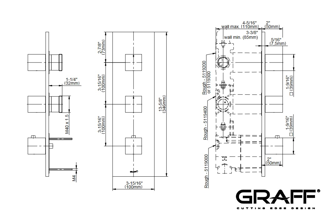 Graff Incanto Bateria natryskowa podtynkowa termostatyczna 3-uchwytowa - element zewnętrzny Chrom E-8057-SH0-T