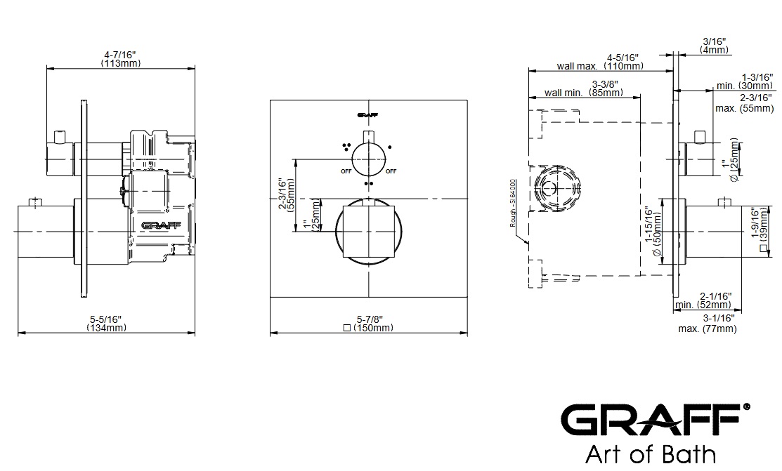 Graff Incanto Zawór termostatyczny 3-drożny podtynkowy - element zewnętrzny Chrom E-18043-SH-T