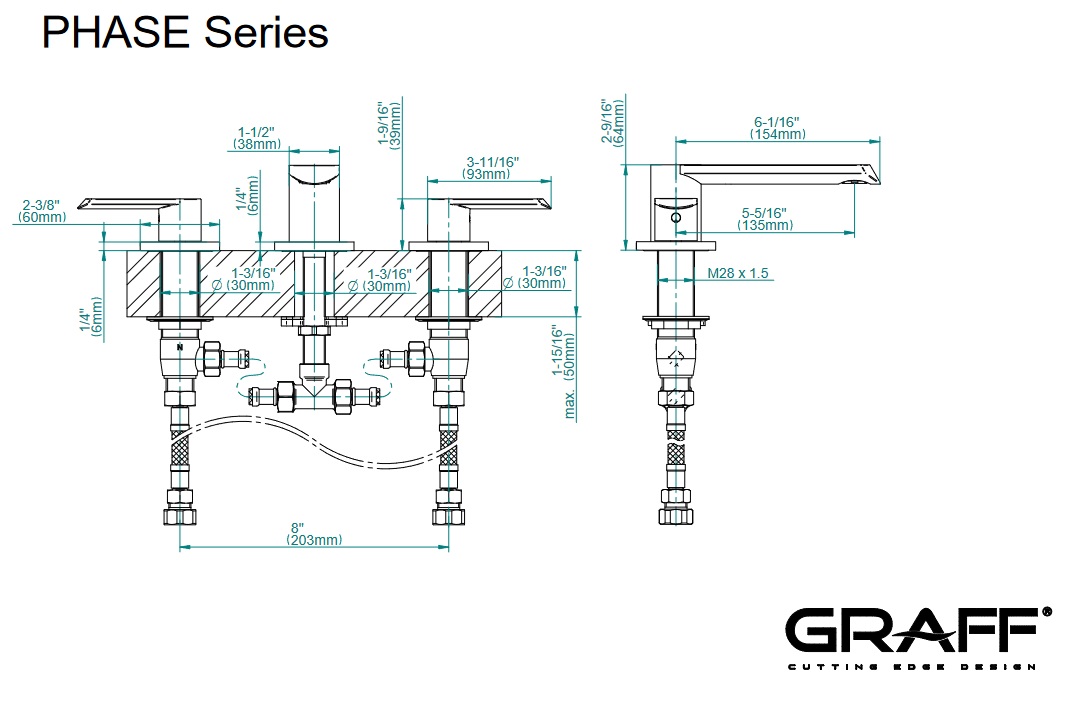 Graff Phase Bateria umywalkowa 3-otworowa Chrom E-6610-LM45B