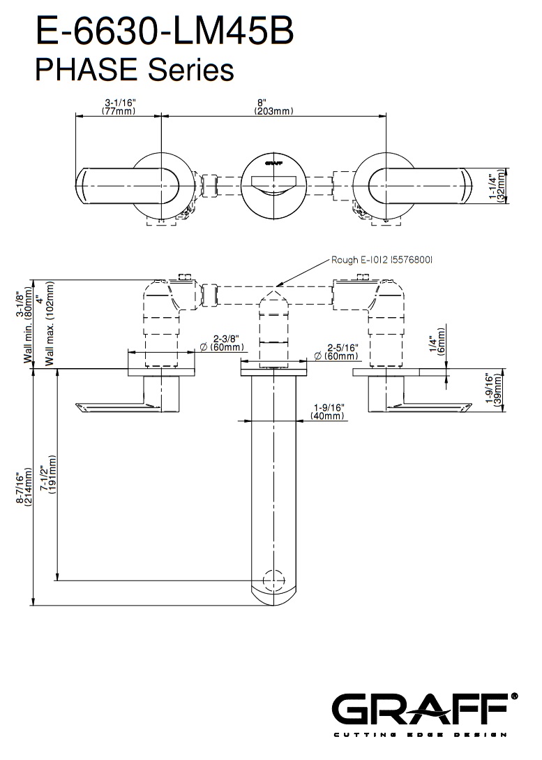 Graff Phase Bateria umywalkowa 3-otworowa podtynkowa 191 mm - element zewnętrzny Chrom E-6630-LM45B-T