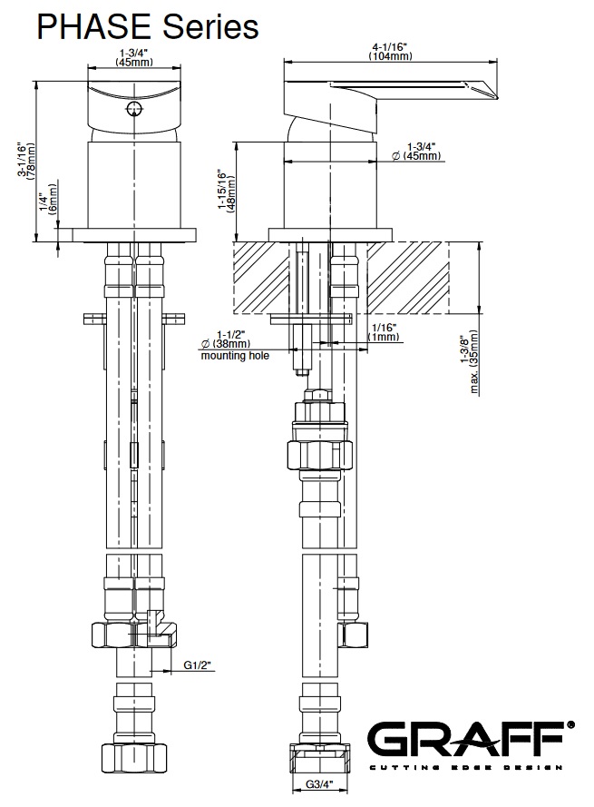Graff Phase Bateria wannowa nablatowa jednouchwytowa Chrom LM45W-BS