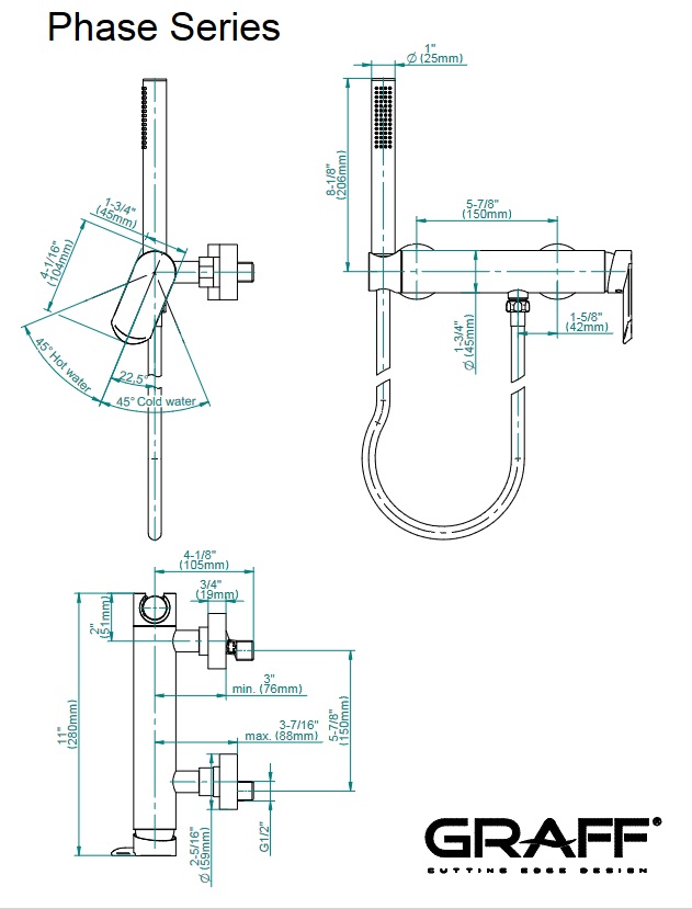 Graff Phase Bateria natryskowa ścienna z zestawem prysznicowym Chrom EX-6672-LM45W
