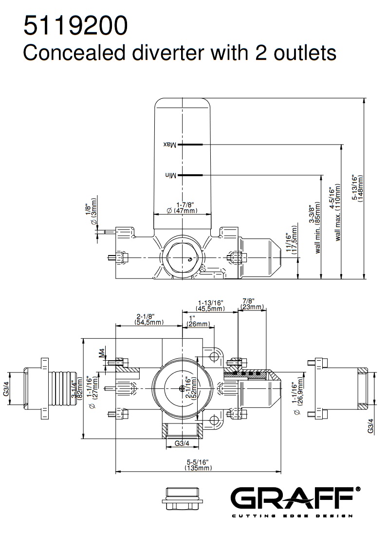 Graff Phase Zestaw natryskowy termostatyczny z zaworem 2-drożnym podtynkowy z deszczownicą Ø 252 mm z zestawem prysznicowym - element zewnętrzny Chrom PHA03