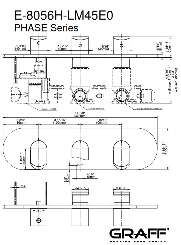 Graff Phase Bateria natryskowa z 3 uchwytami podtynkowa - element zewnętrzny Chrom E-8056H-LM45E0-T