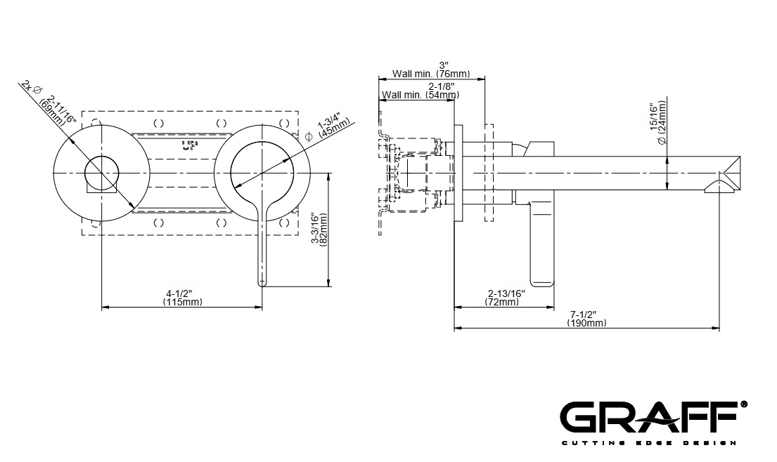 Graff Terra Bateria umywalkowa 2-otworowa podtynkowa 190 mm - element zewnętrzny Chrom E-6735-LM46W-T