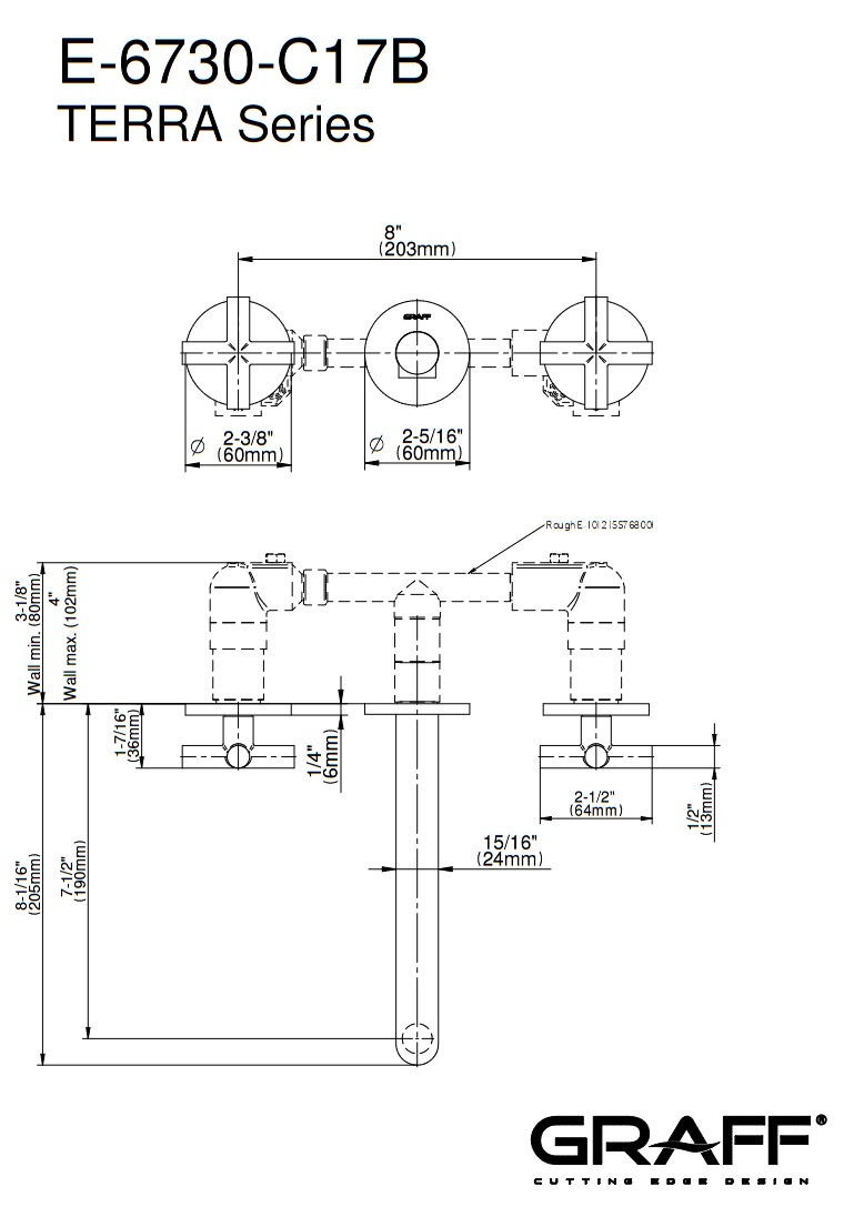Graff Terra Bateria umywalkowa 3-otworowa podtynkowa 190 mm - element zewnętrzny Chrom E-6730-C17B-T