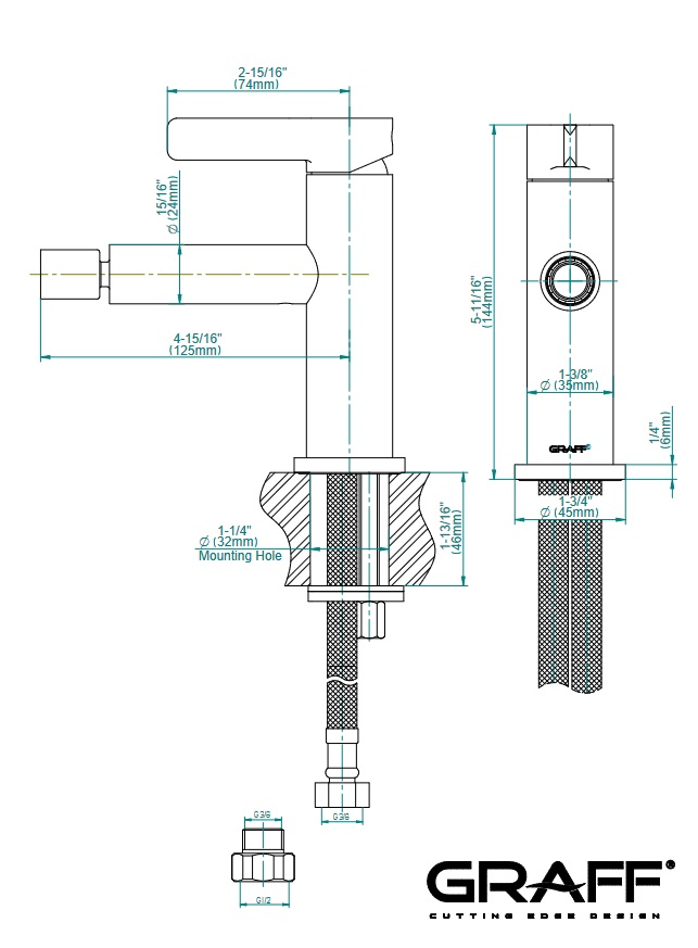 Graff Terra Bateria bidetowa jednouchwytowa Chrom E-6760-LM46