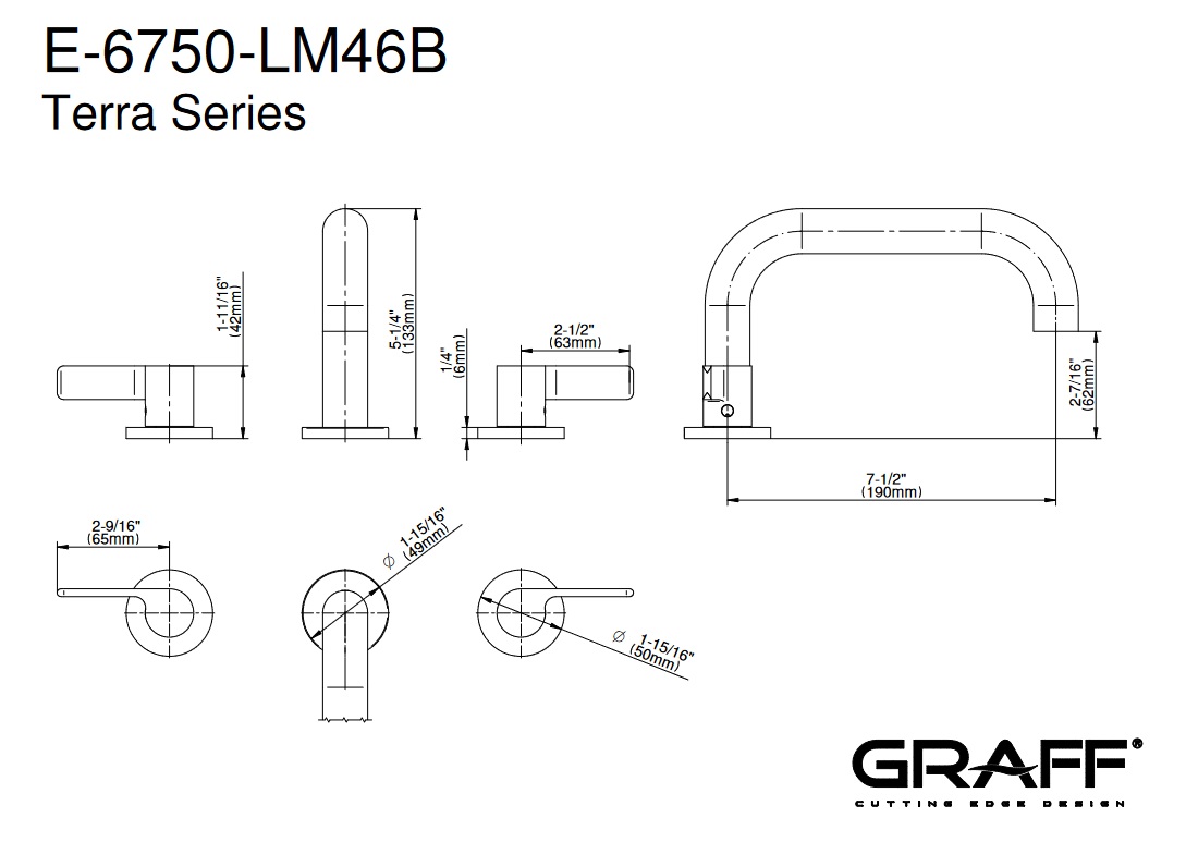 Graff Terra Bateria wannowa 3-otworowa Chrom E-6750-LM46B