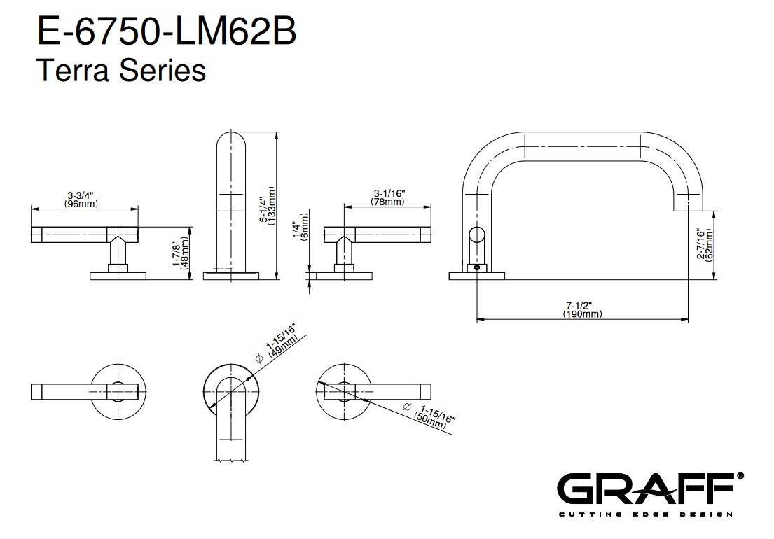 Graff Terra Bateria wannowa 3-otworowa Chrom E-6750-LM62B