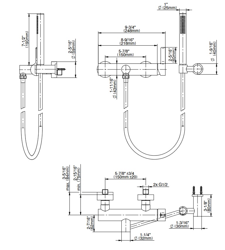 Charakterystyka: z zestawem prysznicowym z uchwytem ściennym