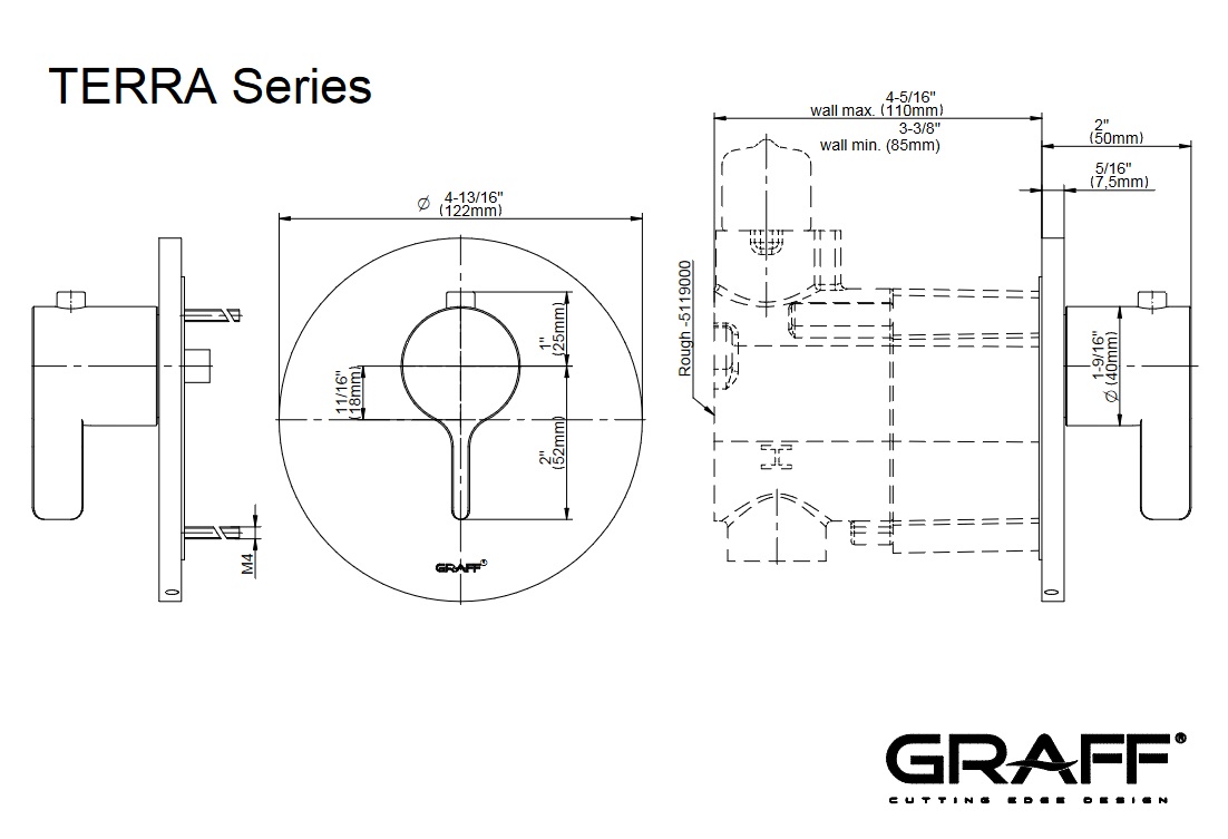 Graff Terra Bateria natryskowa termostatyczna podtynkowa - element zewnętrzny Chrom E-8037-LM46E-T