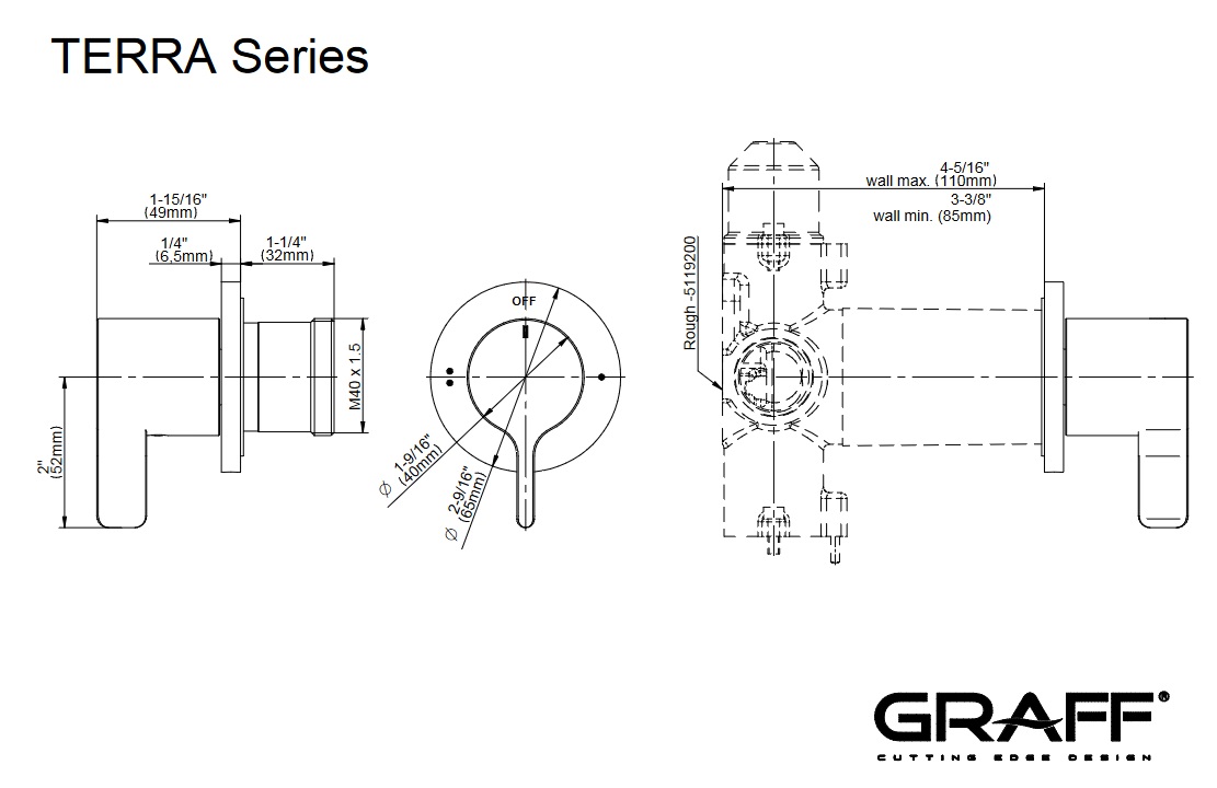 Graff Terra Zawór 2-drożny podtynkowy - element zewnętrzny Chrom E-8068-LM46E1-T
