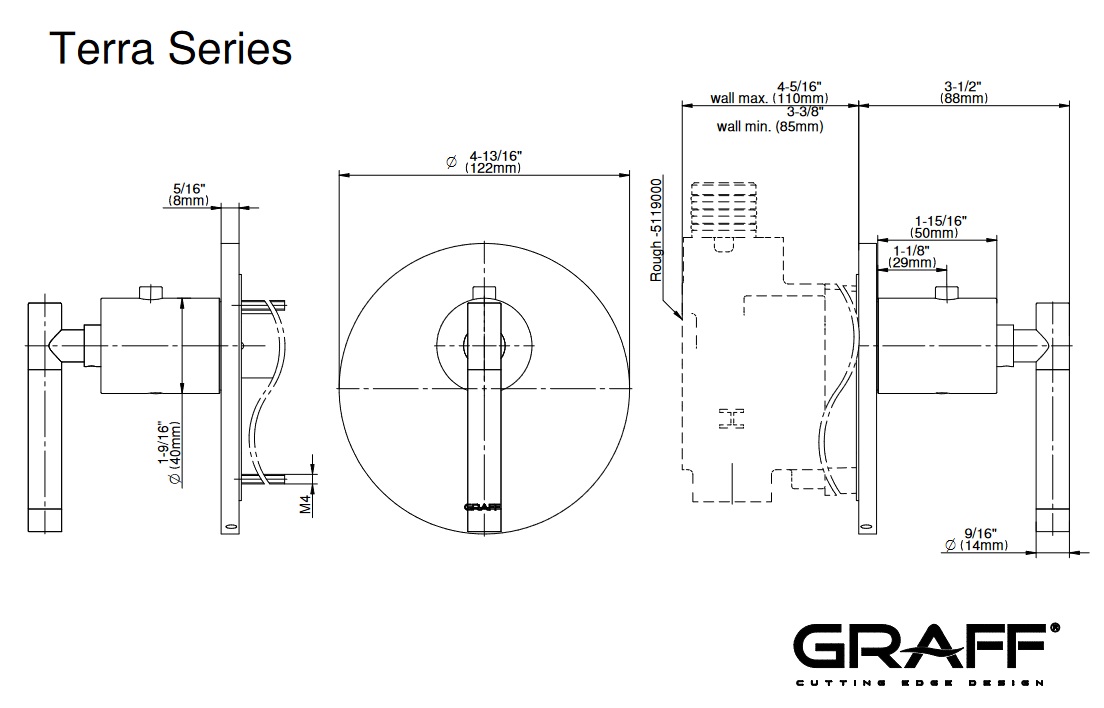 Graff Terra Bateria natryskowa termostatyczna podtynkowa - element zewnętrzny Chrom E-8037-LM62E-T