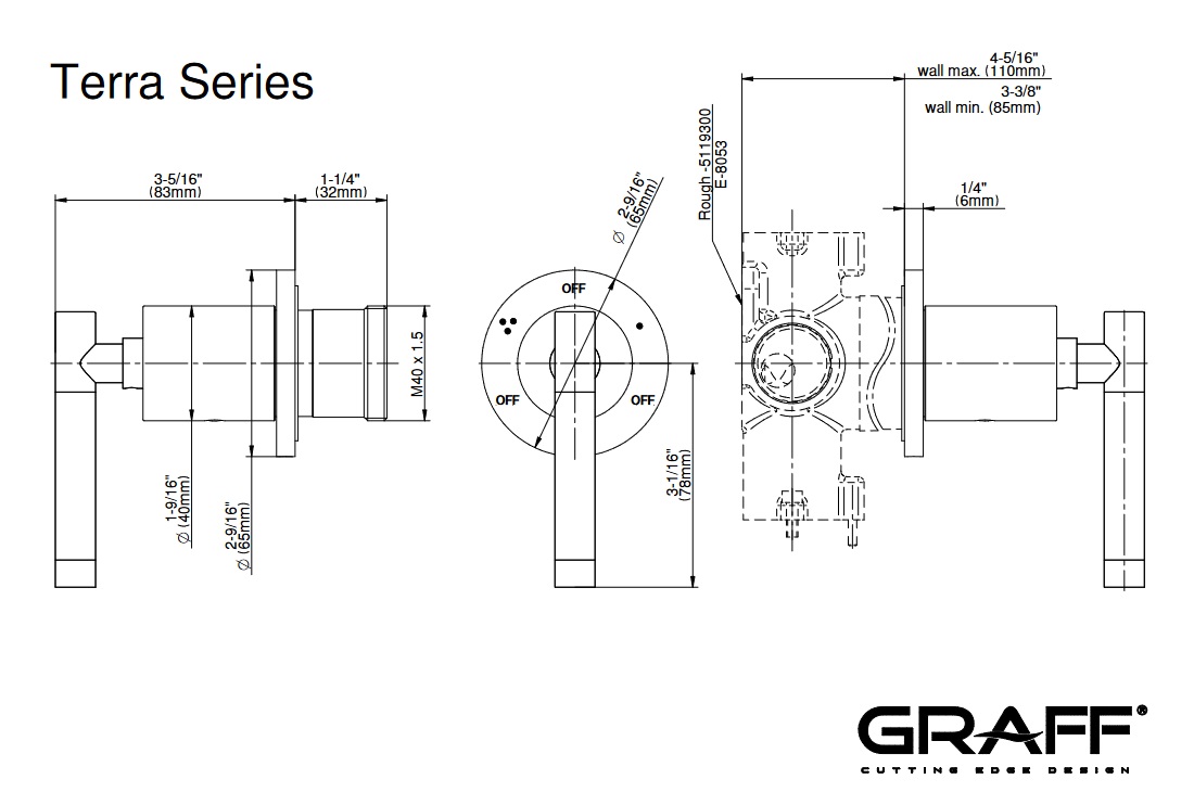 Graff Terra Zawór 3-drożny podtynkowy - element zewnętrzny Chrom E-8069-LM62E1-T
