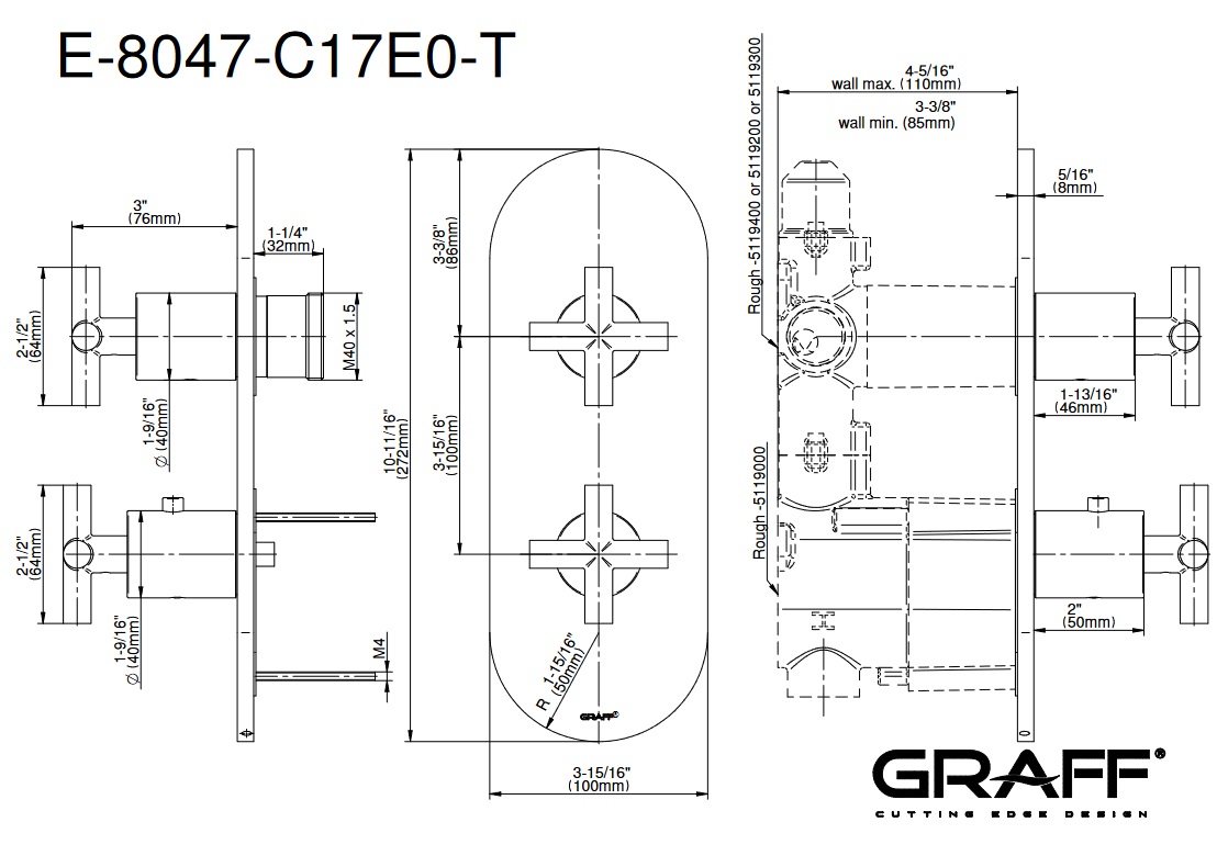 Graff Terra Bateria natryskowa termostatyczna 2-uchwytowa podtynkowa - element zewnętrzny Chrom E-8047-C17E0-T