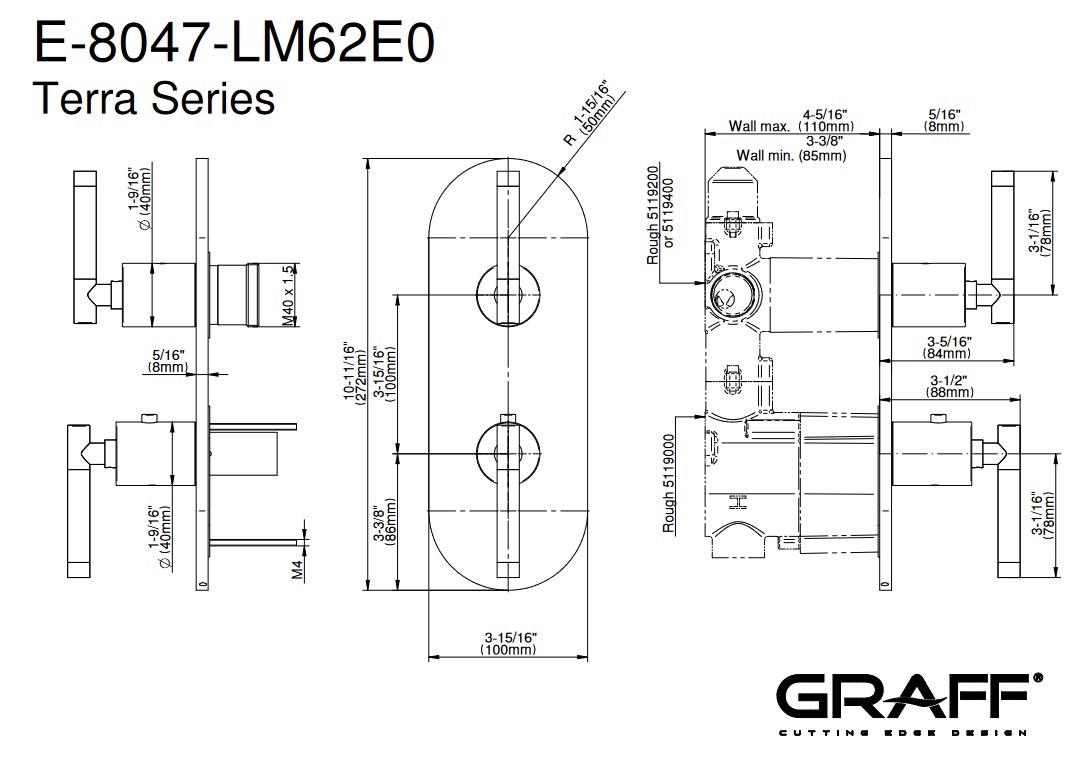 Graff Terra Bateria natryskowa termostatyczna 2-uchwytowa podtynkowa - element zewnętrzny Chrom E-8047-LM62E0-T