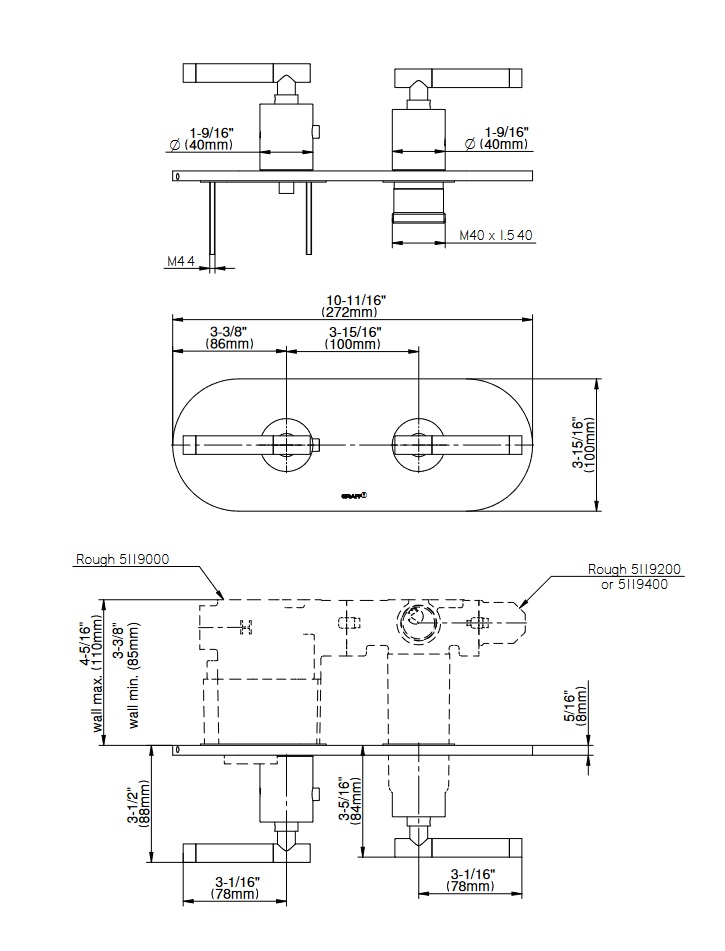 Graff Terra Bateria natryskowa termostatyczna 2-uchwytowa podtynkowa - element zewnętrzny Chrom E-8047H-C17E0-T