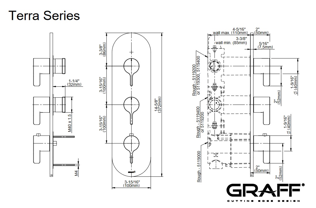 Graff Terra Bateria natryskowa termostatyczna 3-uchwytowa podtynkowa - element zewnętrzny Chrom E-8056H-LM46E0-T