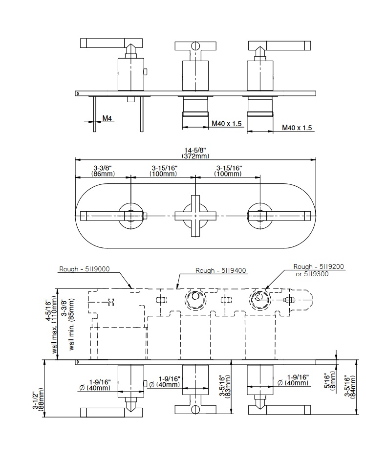 Graff Terra Bateria natryskowa termostatyczna 3-uchwytowa podtynkowa - element zewnętrzny Chrom E-8056H-C17E0-T