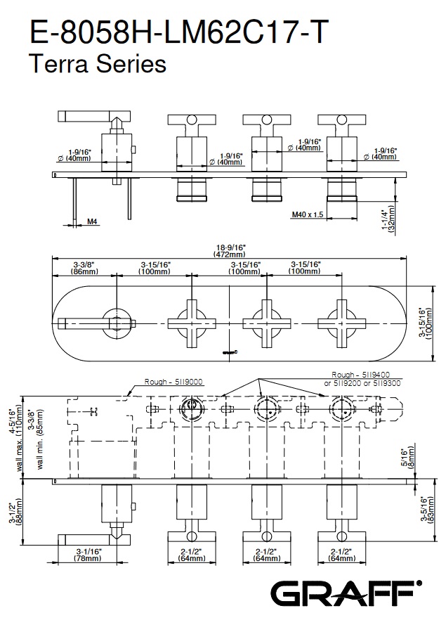 Graff Terra Bateria natryskowa termostatyczna 3-uchwytowa podtynkowa - element zewnętrzny Chrom E-8056H-LM62C17-T