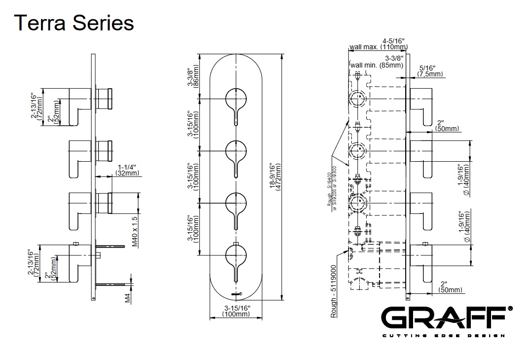 Graff Terra Bateria natryskowa termostatyczna 4-uchwytowa podtynkowa - element zewnętrzny Chrom E-8058H-LM46E0-T