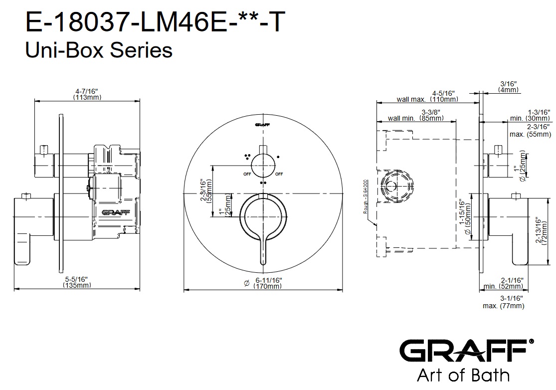 Graff Terra Bateria natryskowa termostatyczna 3- drożna podtynkowa - element zewnętrzny Chrom E-18037-LM46E-T