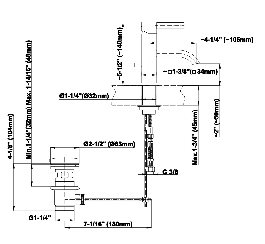 Graff Qubic Bateria umywalkowa jednouchwytowa 105 mm z korkiem automatycznym Chrom E-6201D-LM39M