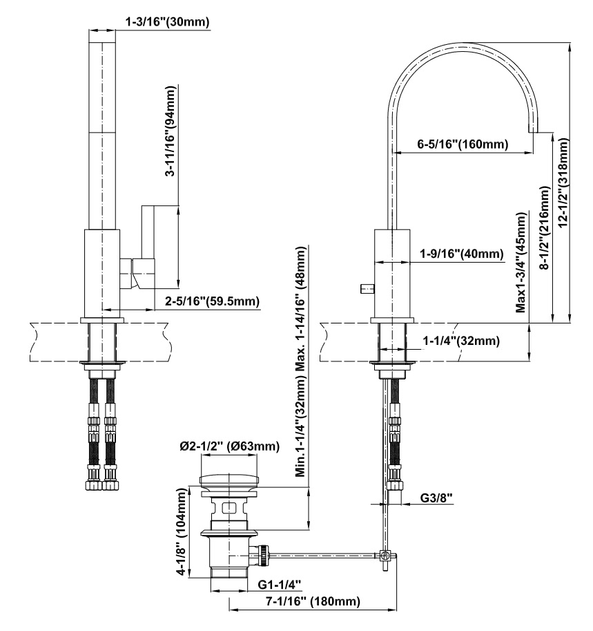Wysokość wylewki: 216 mm