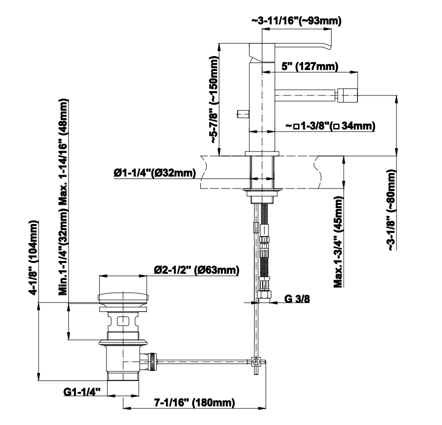 Wysokość wylewki: 80 mm