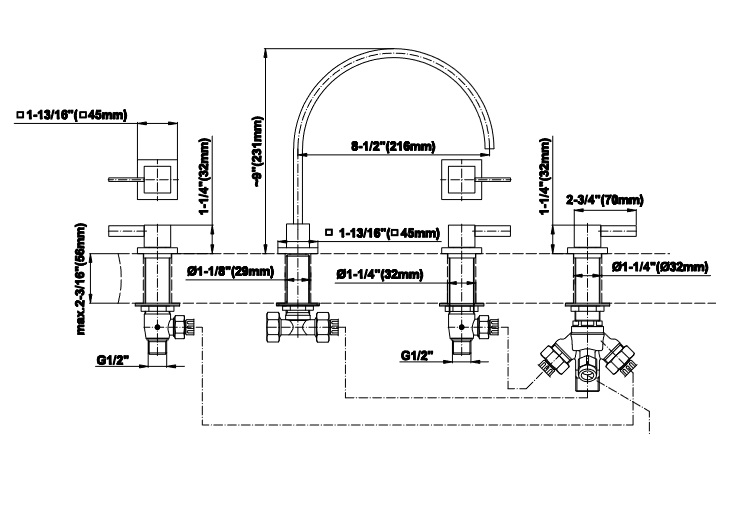 Graff Qubic Bateria wannowa 3-otworowa Chrom E-6250-LM39B