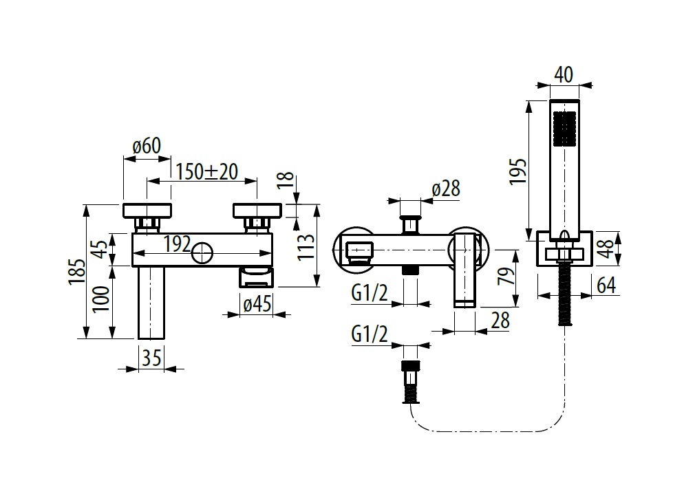 Graff Qubic Bateria wannowo-natryskowa z zestawem prysznicowym ściennym Chrom EX-3776-LM39W