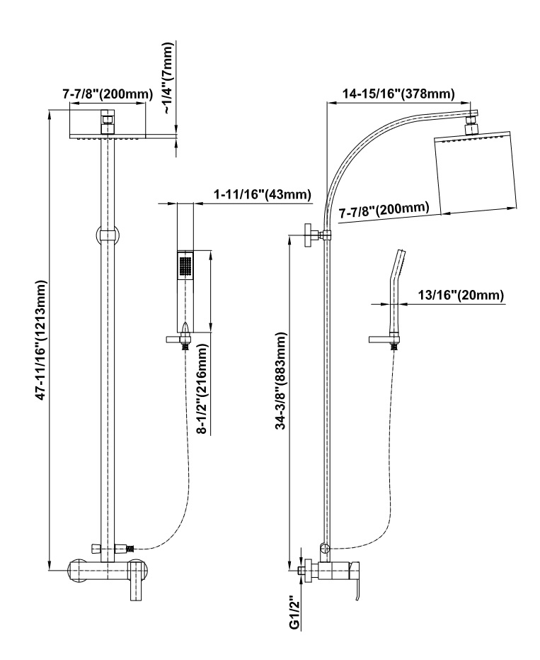 Graff Qubic Zestaw natryskowy z termostatem oraz deszczownicą 200x200 mm i zestawem prysznicowym Chrom EX-3670-LM38N