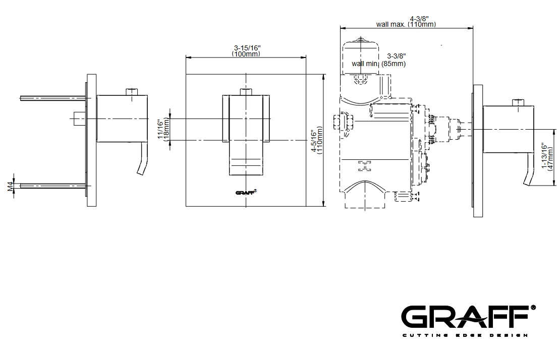 Graff Qubic Rozdzielacz 2-drożny podtynkowy - element zewnętrzny Chrom E-8071-LM38E1-T