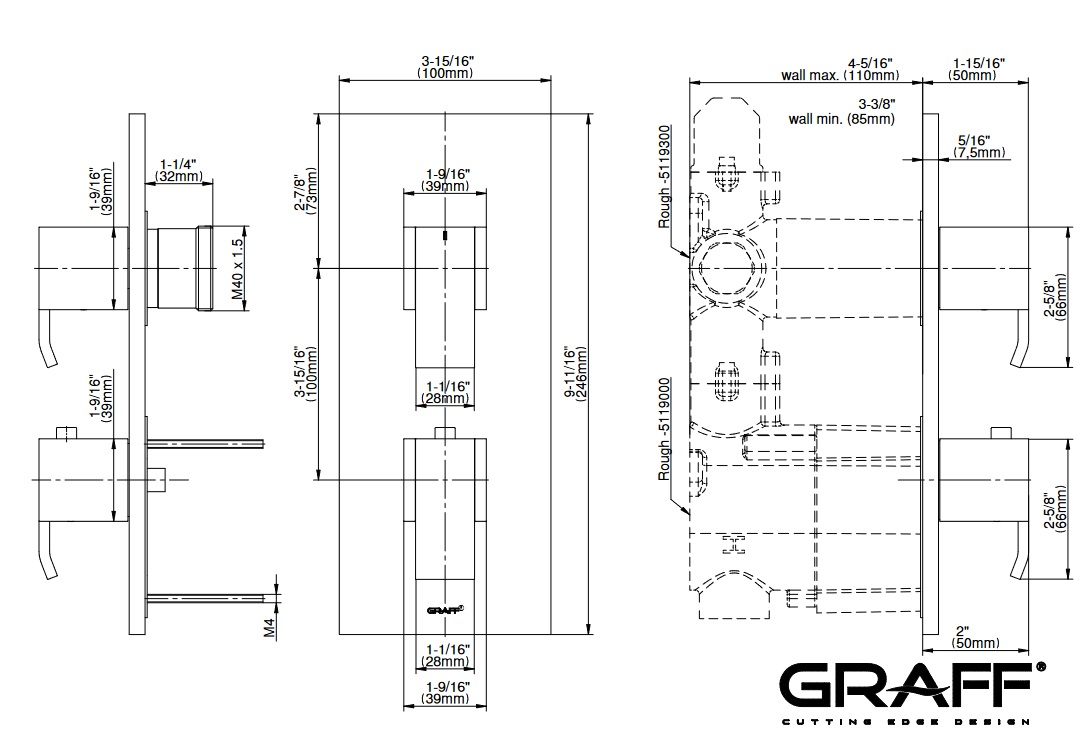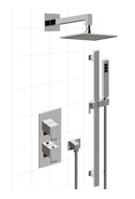 Graff Qubic Zestaw natryskowy termostatyczny podtynkowy z deszczownicą 250x250 mm z zestawem prysznicowym na drążku - element zewnętrzny Chrom QUB04