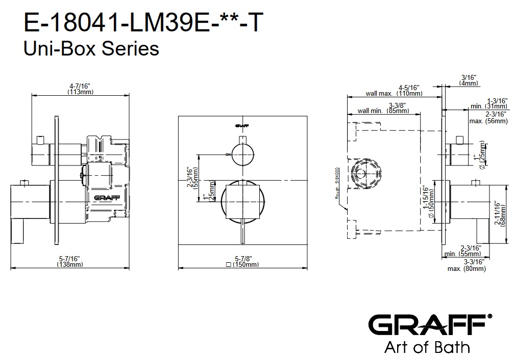 Graff Qubic Bateria natryskowa termostatyczna podtynkowa - element zewnętrzny Chrom E-18041-LM39E-T