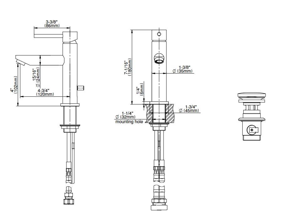 Graff M.E./M.E.25 Bateria umywalkowa jednouchwytowa 120 mm z korkiem automatycznym Chrom E-6103D-LM41