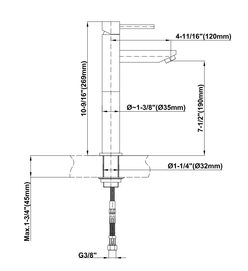 Wysokość wylewki: 190 mm