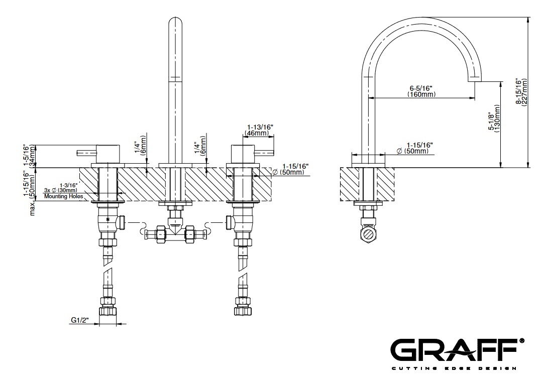 Graff M.E./M.E.25 Bateria umywalkowa 3-otworowa 160 mm Chrom E-6111N-LM41B