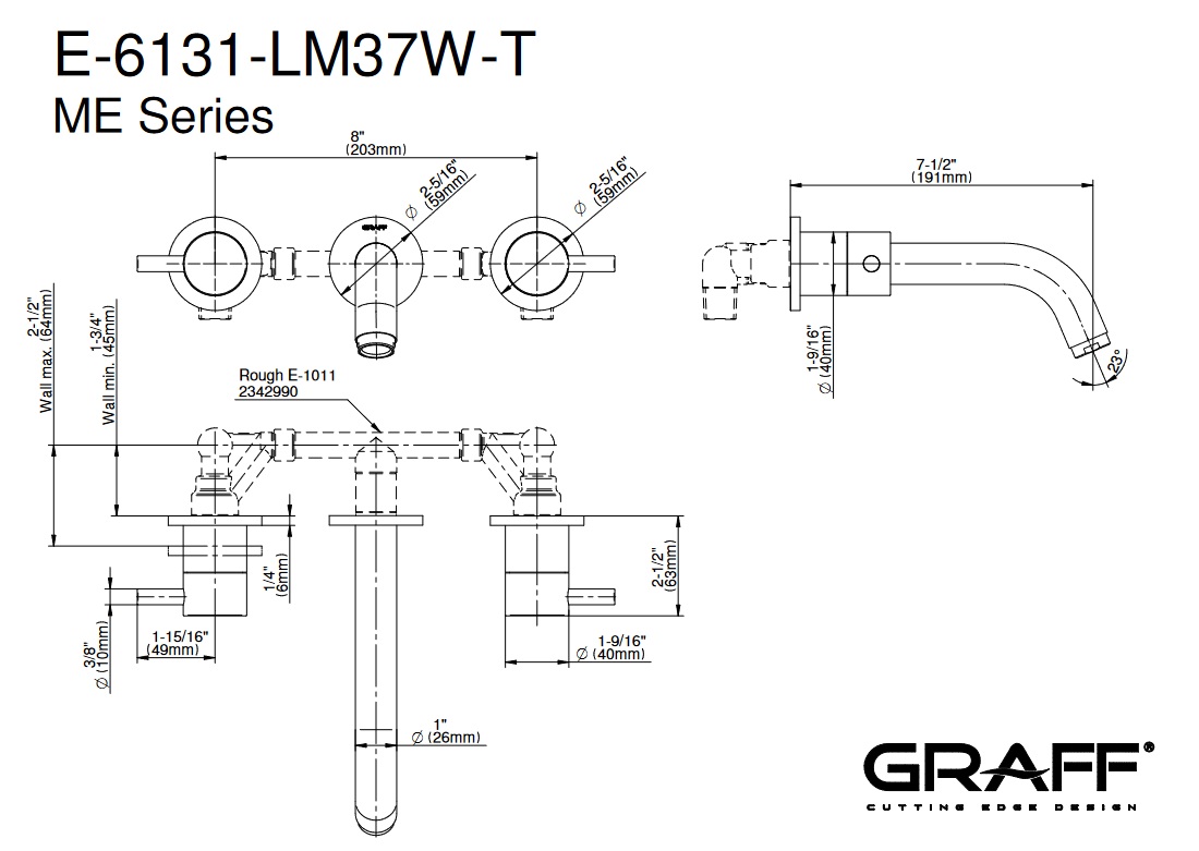 Graff M.E./M.E.25 Bateria umywalkowa 3-otworowa 191 mm podtynkowa - element zewnętrzny Chrom E-6131-LM37W-T