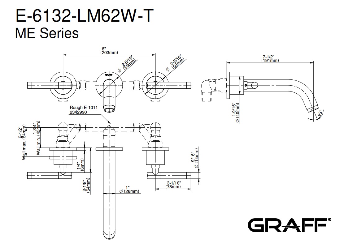 Graff M.E./M.E.25 Bateria umywalkowa 3-otworowa 191 mm podtynkowa - element zewnętrzny Chrom E-6132-LM62W-T