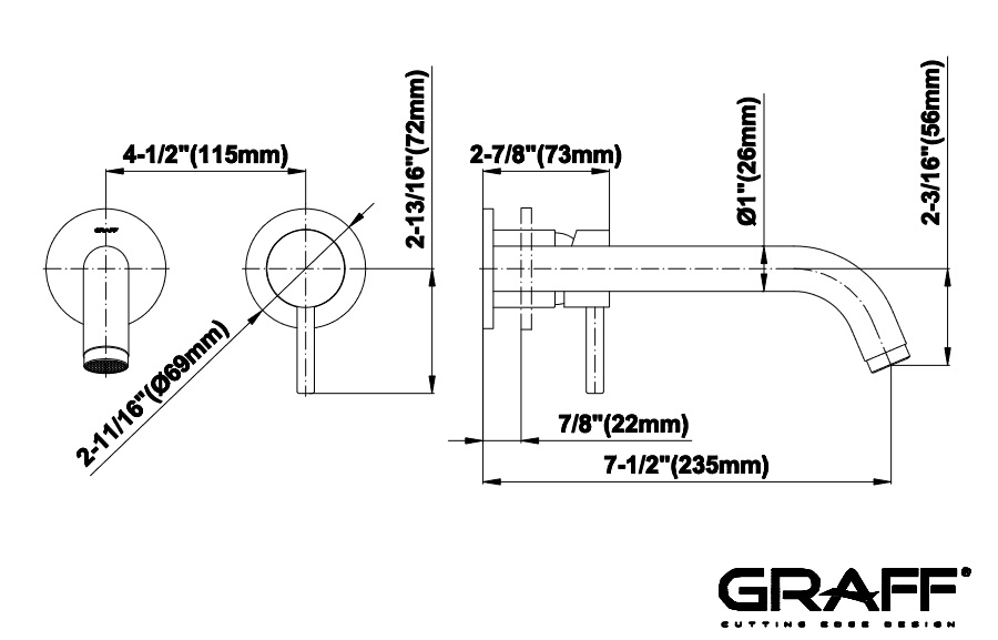 Graff M.E./M.E.25 Bateria umywalkowa 2-otworowa 235 mm podtynkowa - element zewnętrzny Chrom E-6136-LM41W-T
