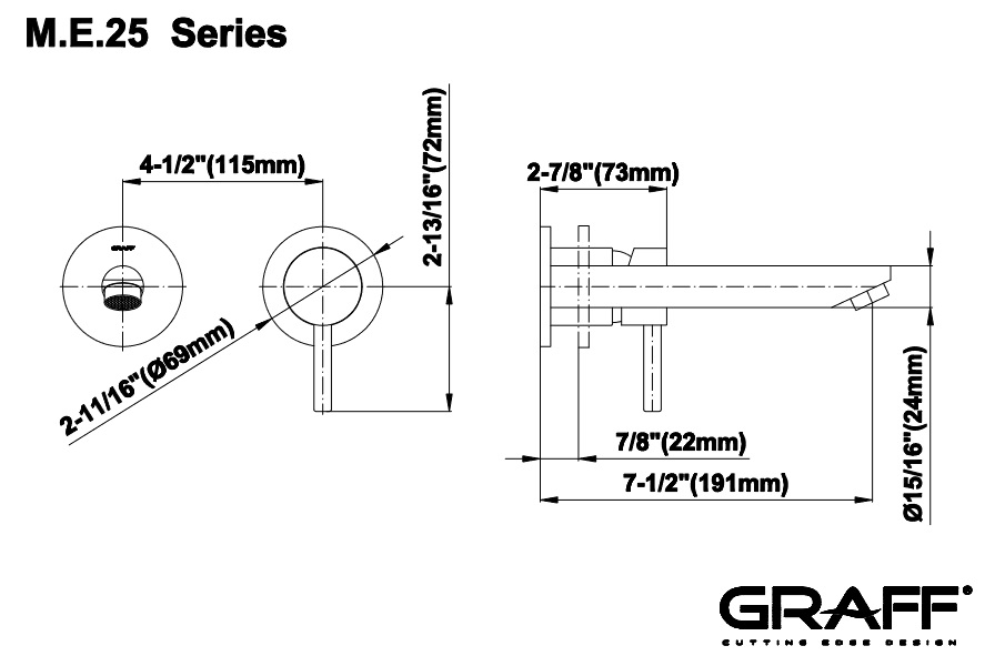 Graff M.E./M.E.25 Bateria umywalkowa 2-otworowa 191 mm podtynkowa - element zewnętrzny Chrom E-6138-LM41W-T