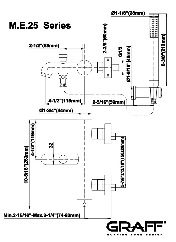 Graff M.E./M.E.25 Bateria wannowo-natryskowa ścienna z zestawem prysznicowym Chrom EX-6176-LM37