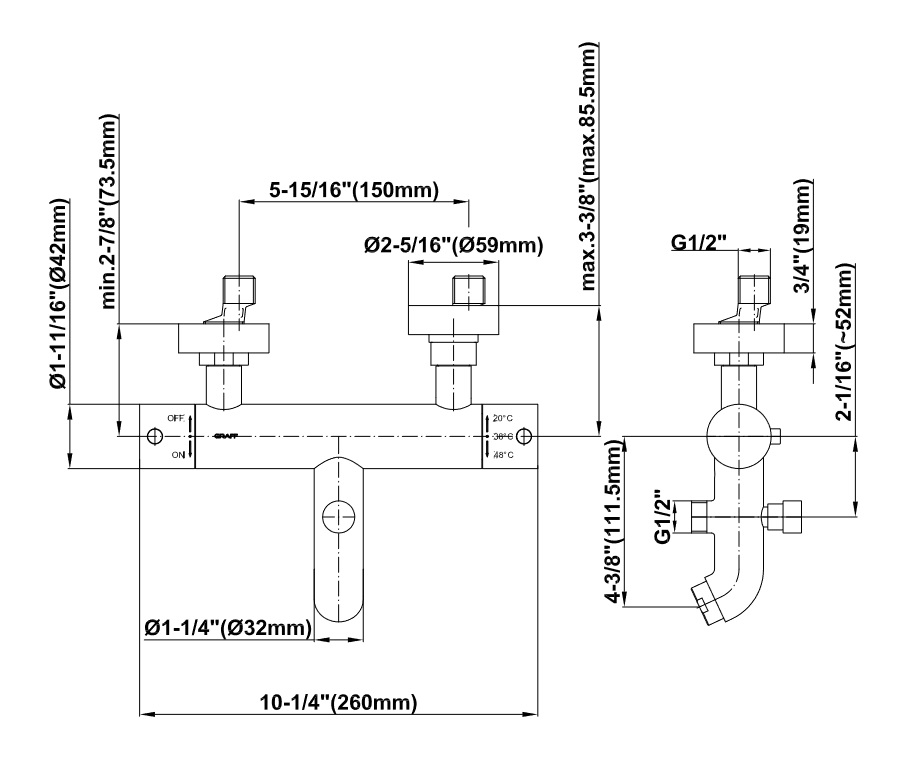 Graff M.E./M.E.25 Bateria wannowo-natryskowa termostatyczna ścienna Chrom EX-6185-RHT