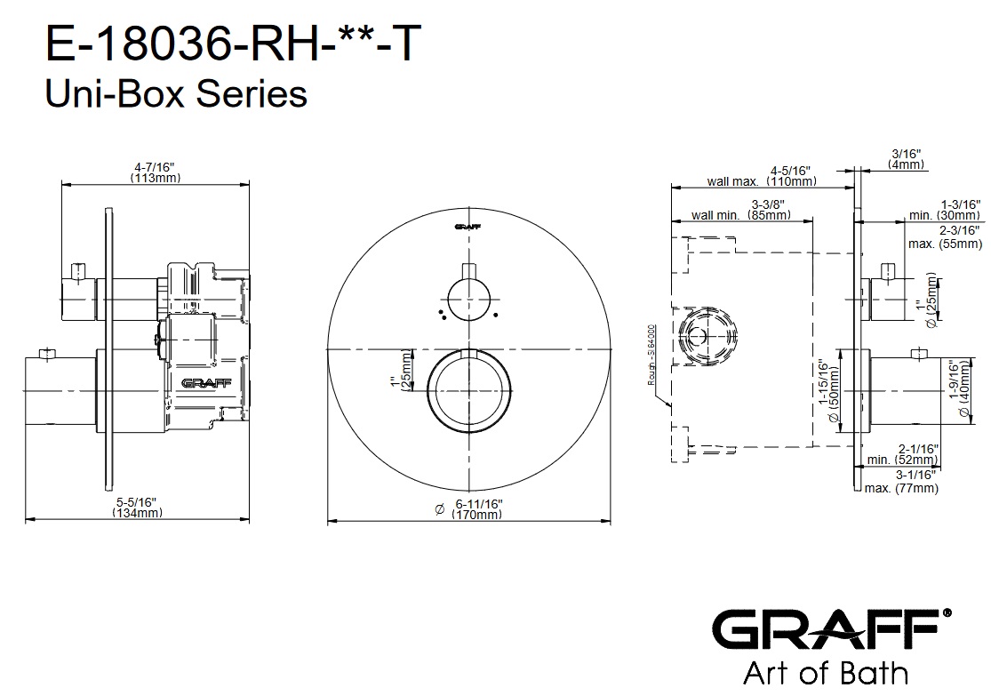 Graff M.E./M.E.25 Zestaw natryskowy termostatyczna UNI-BOX podtynkowy z deszczownicą Ø 252 mm z zestawem prysznicowym - element zewnętrzny Chrom ME02