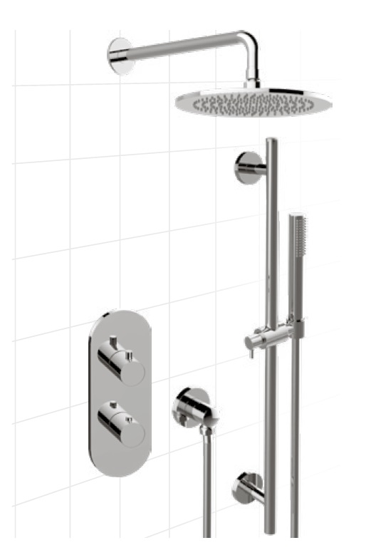Graff M.E./M.E.25 Zestaw natryskowy termostatyczny podtynkowy z deszczownicą Ø 252 mm z zestawem prysznicowym na drążku - element zewnętrzny Chrom ME04